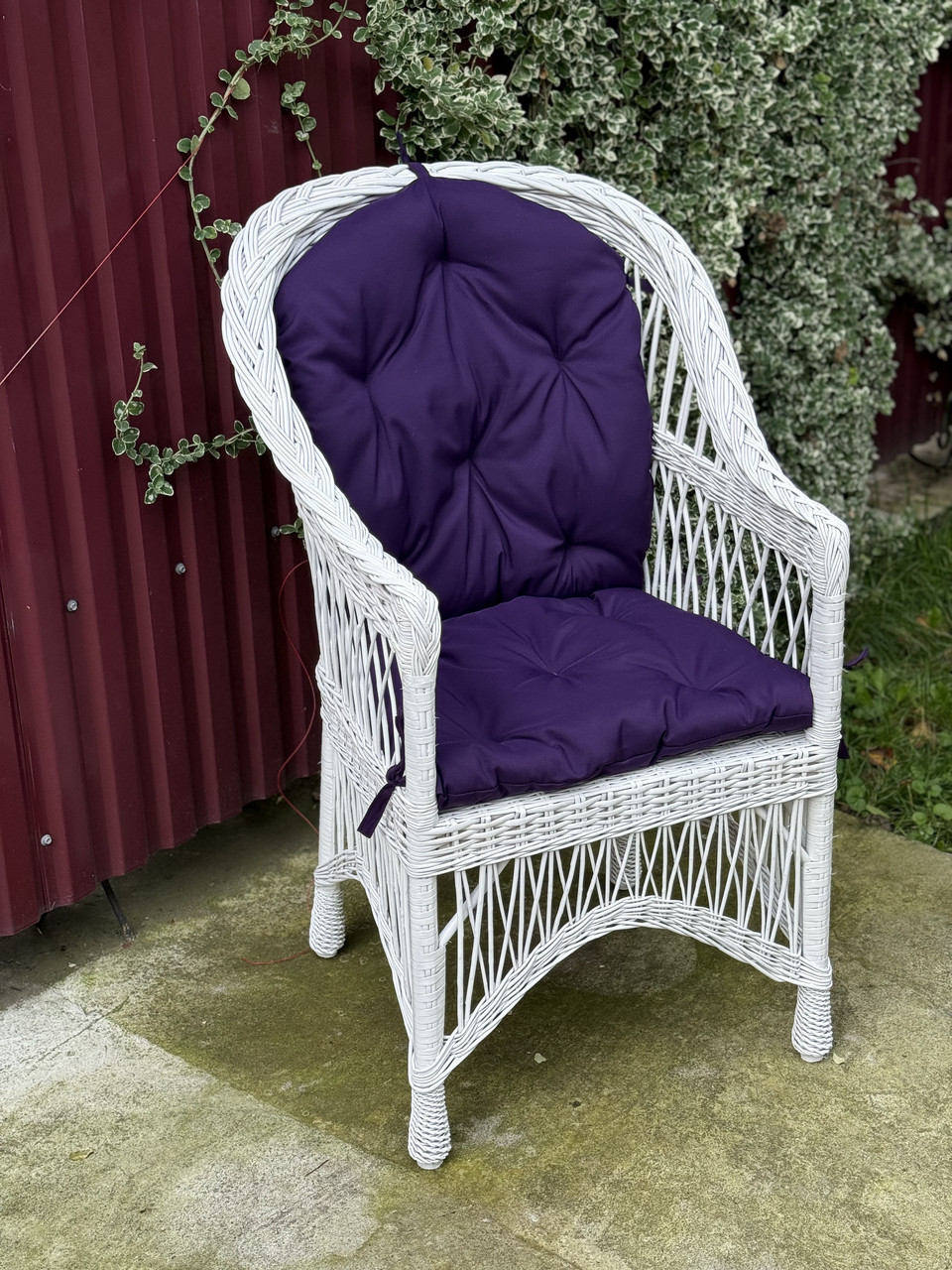 Плетене крісло в білому кольорі в наборі з мʼяким матрасом